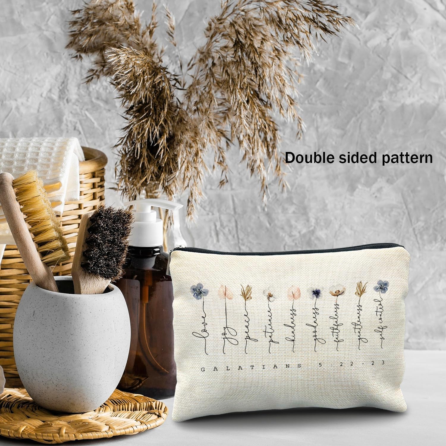 christian flower makeup bag,Galatians 5:22-23,fruit of the spirit,christian gifts for women girl,Christian Gift bags,Bible Verse Gifts,Inspirational Gifts for Women girls,Bible Verse cosmetic bag