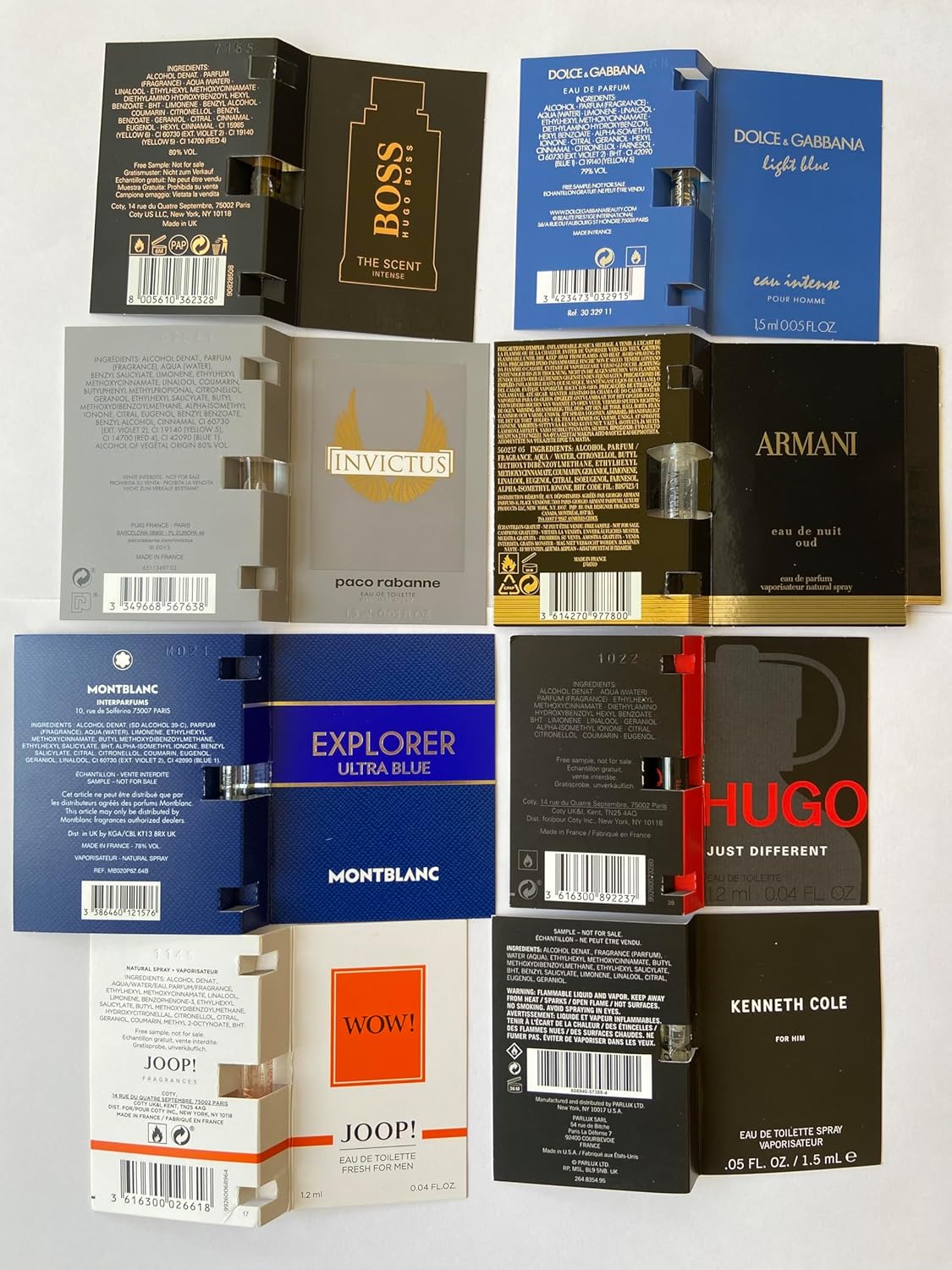 Men’s Cologne Collection Designer Fragrance Sample Pack (9ct) including a Versace mini bottle and postcard
