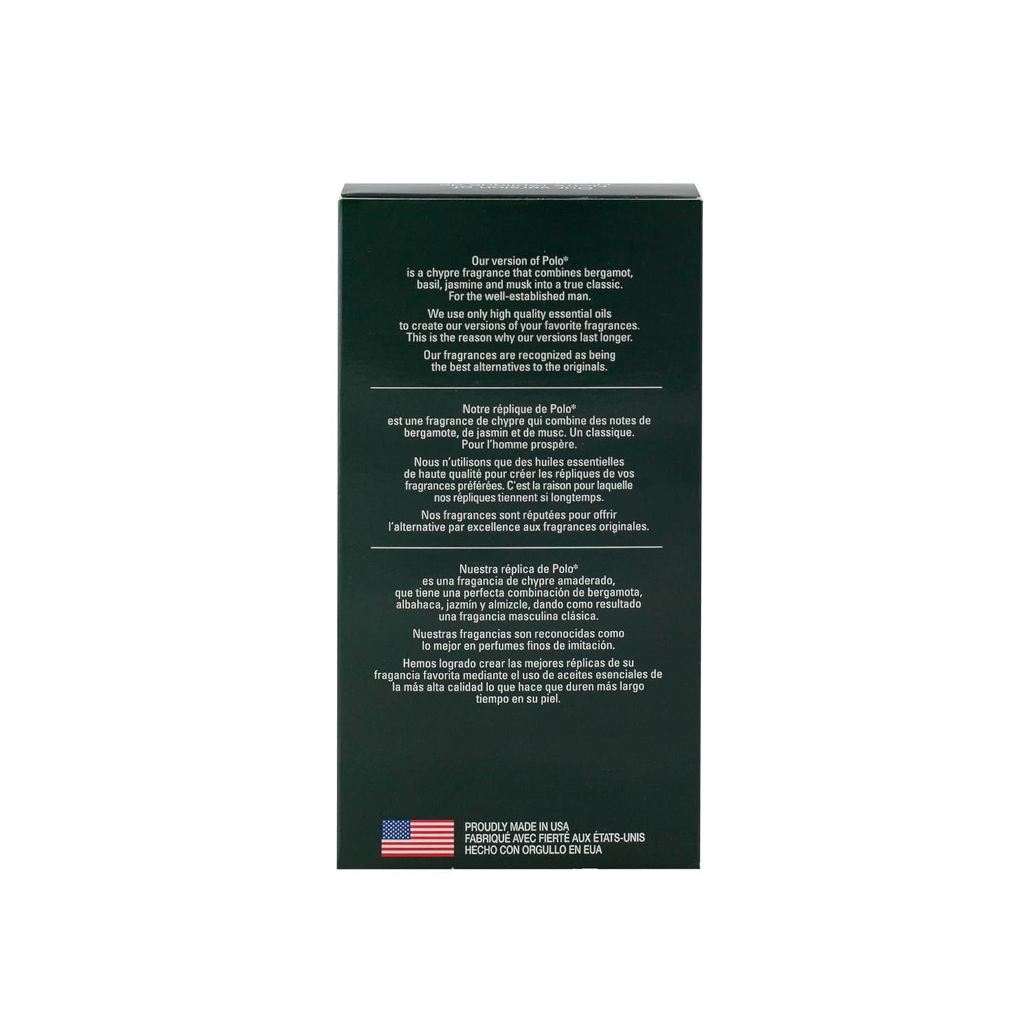 Classic Match, version of Polo Eau de Toilette Spray for Men, is a fresh chypre scent blending bergamot, basil, jasmine and musk. This long-lasting version of Polo is formulated with premium quality oils and is perfect for day or evening wear. An irresistible and affordable alternative to the designer original. Classic Match fragrances are not associated with Polo which is the trademark of the brand name manufacturer.